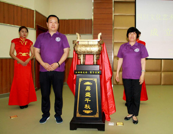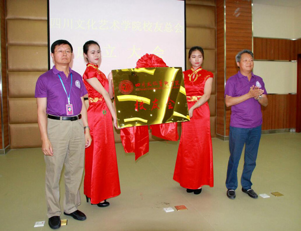 大会在我校经历十七年风雨办学历程回顾的宣传片中拉开序幕。司仪随后宣读《四川文化艺术学院校友总会章程》、校友总会组织机构人员两项议程,议程在全场人员一致同意中通过。大会通过董事长兼校长龚珍旭博士担任校友总会会长、执行校长兼党委书记李望国担任校友总会执行会长的决定。随后,龚珍旭会长和李望国执行会长为校友总会成立举行揭牌仪式。四川华怿教育文化传播集团有限公司总经理李代钰、党委书记赵全贵为“四川文化艺术学院校友总会山西分会”赠送的寓意“鼎盛千秋”的宝鼎进行揭幕。