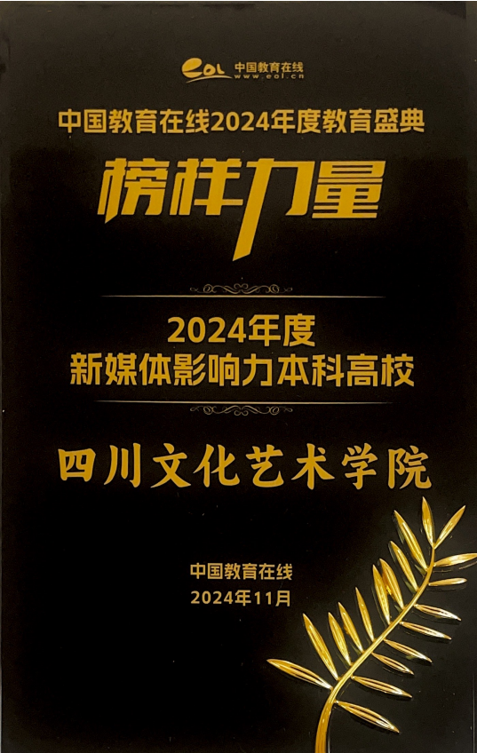 近日,在中国教育在线2024年度教育盛典“榜样力量”评选活动中,通过综合评估各高校利用新媒体传播渠道、数字化手段、AI技术等,在高校校园文化建设、对内对外品牌形象塑造方面的创新意识和探索精神,以及高校品牌宣传和影响力方面的贡献程度,四川文化艺术学院在全国3000多所高校中脱颖而出,获评“2024年度新媒体影响力高校”的荣誉称号。这一荣誉不仅是对学校新媒体工作的肯定,也是对其在新媒体时代积极探索和创新精神的认可。