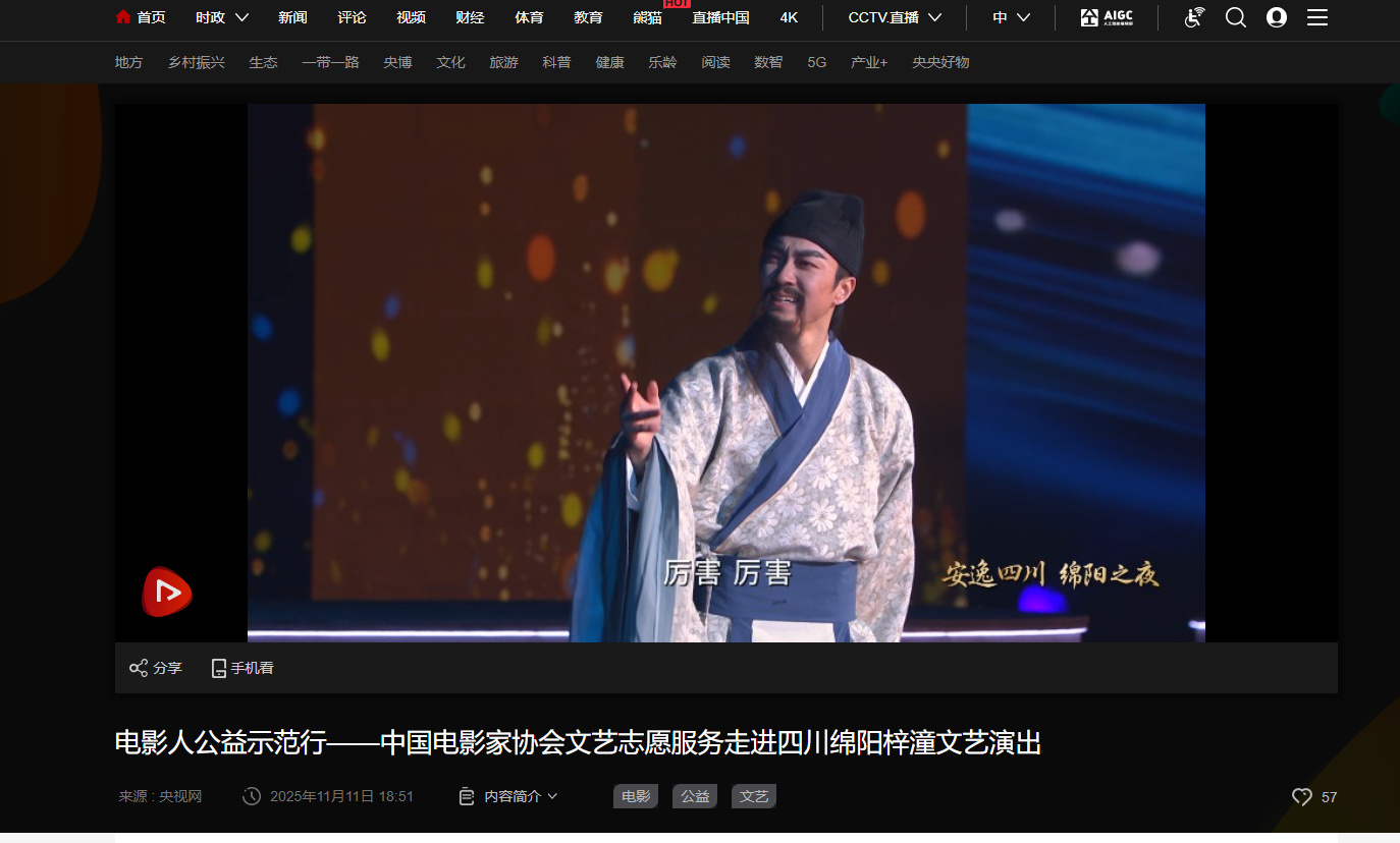 电影人公益示范行——中国电影家协会文艺志愿服务走进四川绵阳梓潼文艺演出_文化频道_央视网(cctv.com)