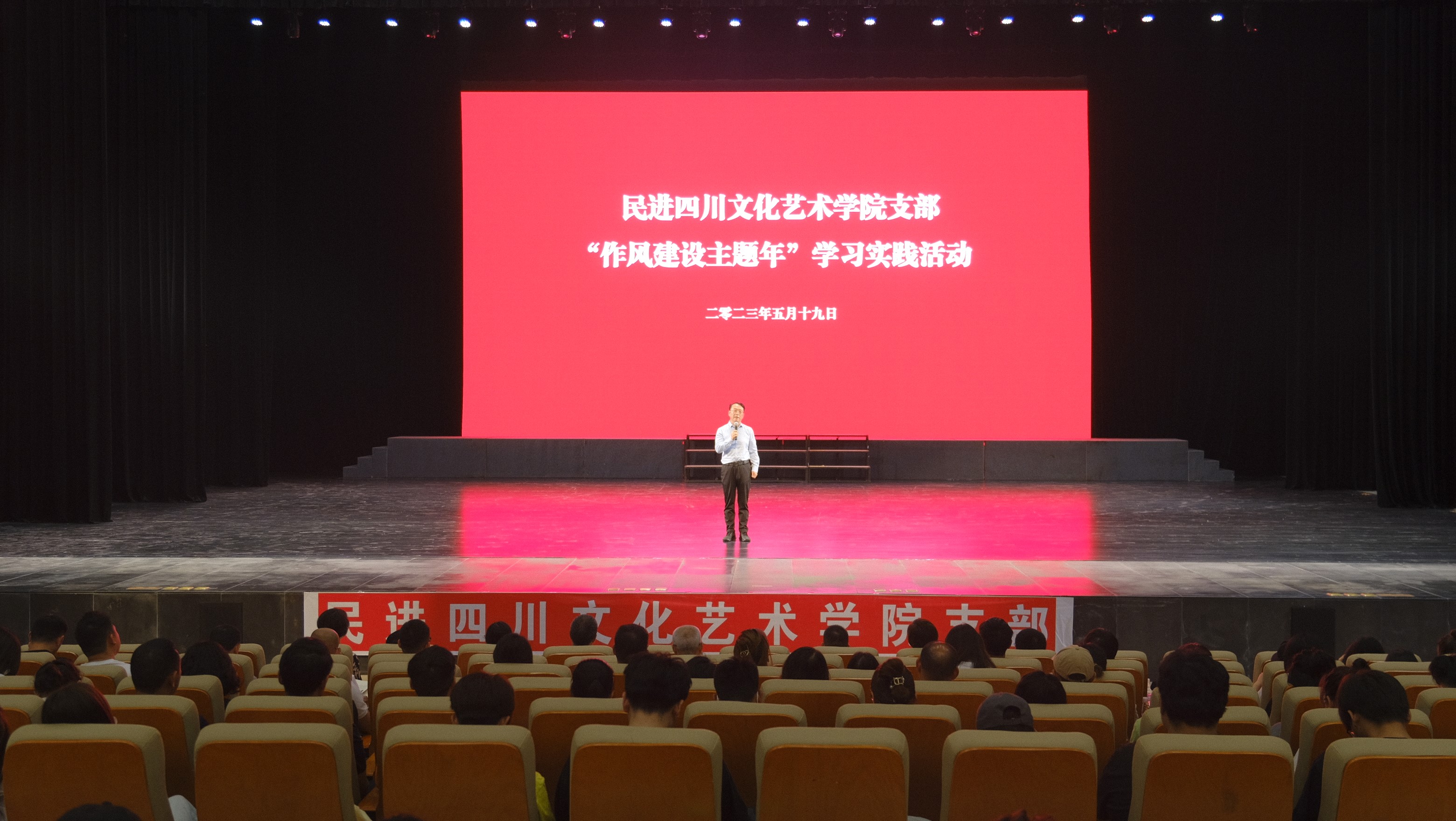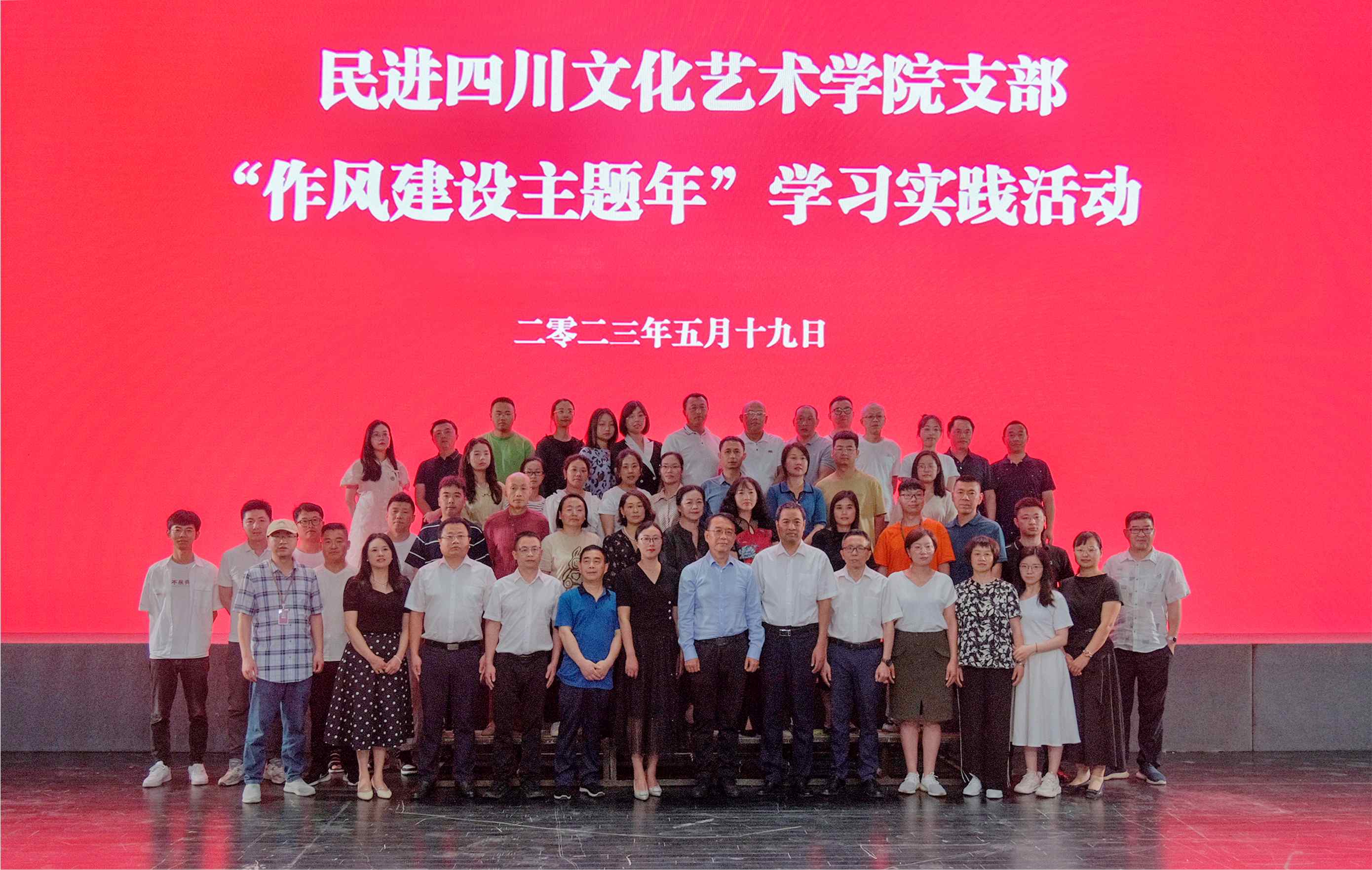 5月19日,民进四川文化艺术学院支部在学校梓潼校区举行“作风建设主题年”学习实践活动启动仪式。绵阳市人大常委会副主任、民进绵阳市委主委李京平,绵阳市人大常委会副秘书长廖进,民进绵阳市委秘书长赵波,民进绵阳市委委员、组织部部长胡香君,梓潼县人大常委会副主任陈红,梓潼县委统战部副部长杨梓健等市县校相关领导参加启动仪式。