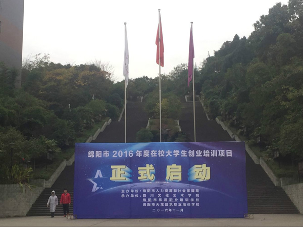 11月22日,绵阳市2016年SYB创业培训项目在我校正式启动。培训由市人力资源和社会保障局主办,四川文化艺术学院、绵阳市旅游职业培训学校、绵阳市天龙晟筑职业培训学校三家单位共同承办。