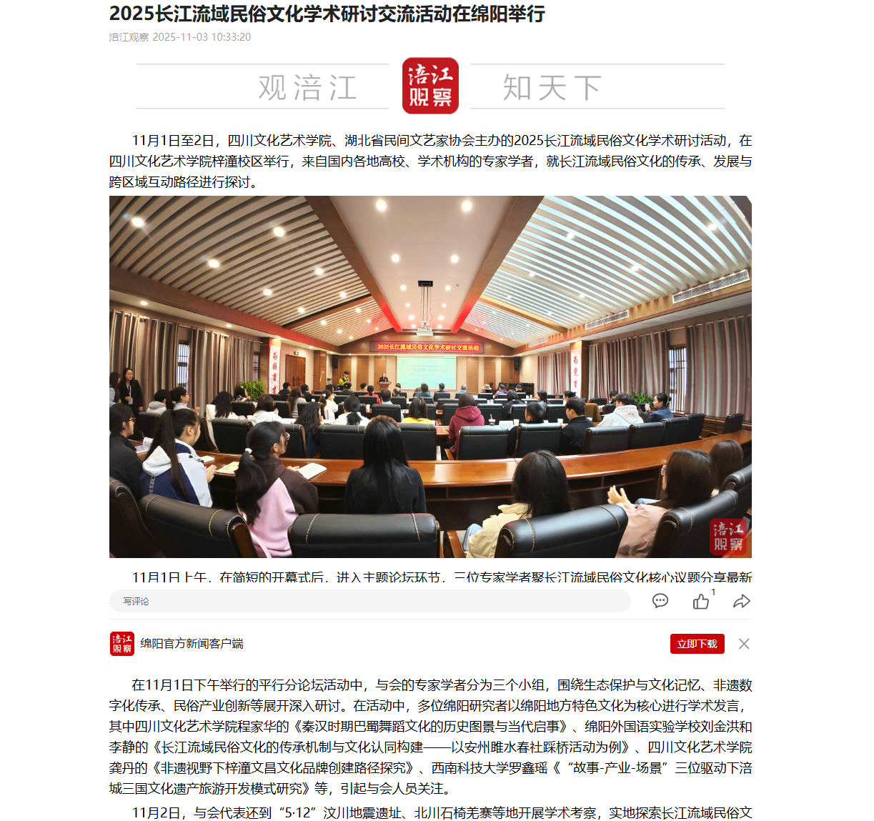 2025长江流域民俗文化学术研讨交流活动在绵阳举行
