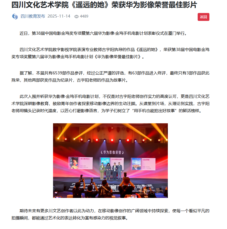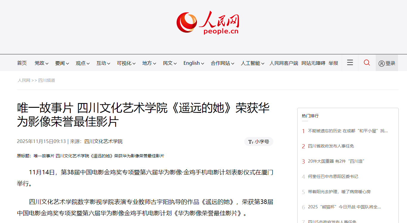 唯一故事片 四川文化艺术学院《遥远的她》荣获华为影像荣誉最佳影片 (people.com.cn)