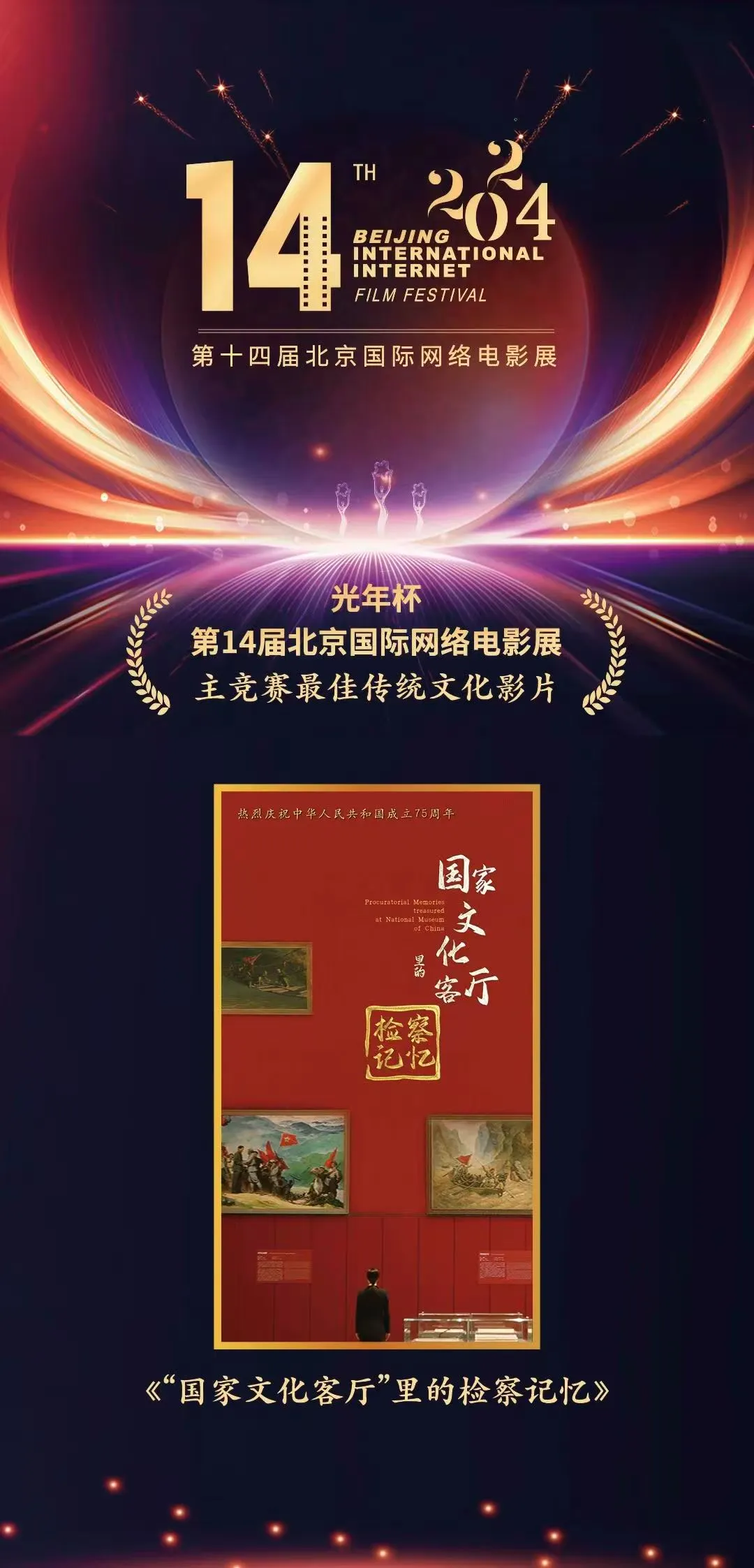 12月28日,第14届北京国际网络电影展表彰盛典圆满结束。在“主旋律单元”评选中,我校戏剧影视学院2020届影视摄影与制作专业毕业生李先硕参与策划、编剧,最高人民检察院新媒体、检察日报社与中国国家博物馆、人民检察博物馆、正义网络传媒、北京市检察院、北京市检察院第三分院联合出品的作品《“国家文化客厅”里的检察记忆》获评“最佳传统文化影片”。