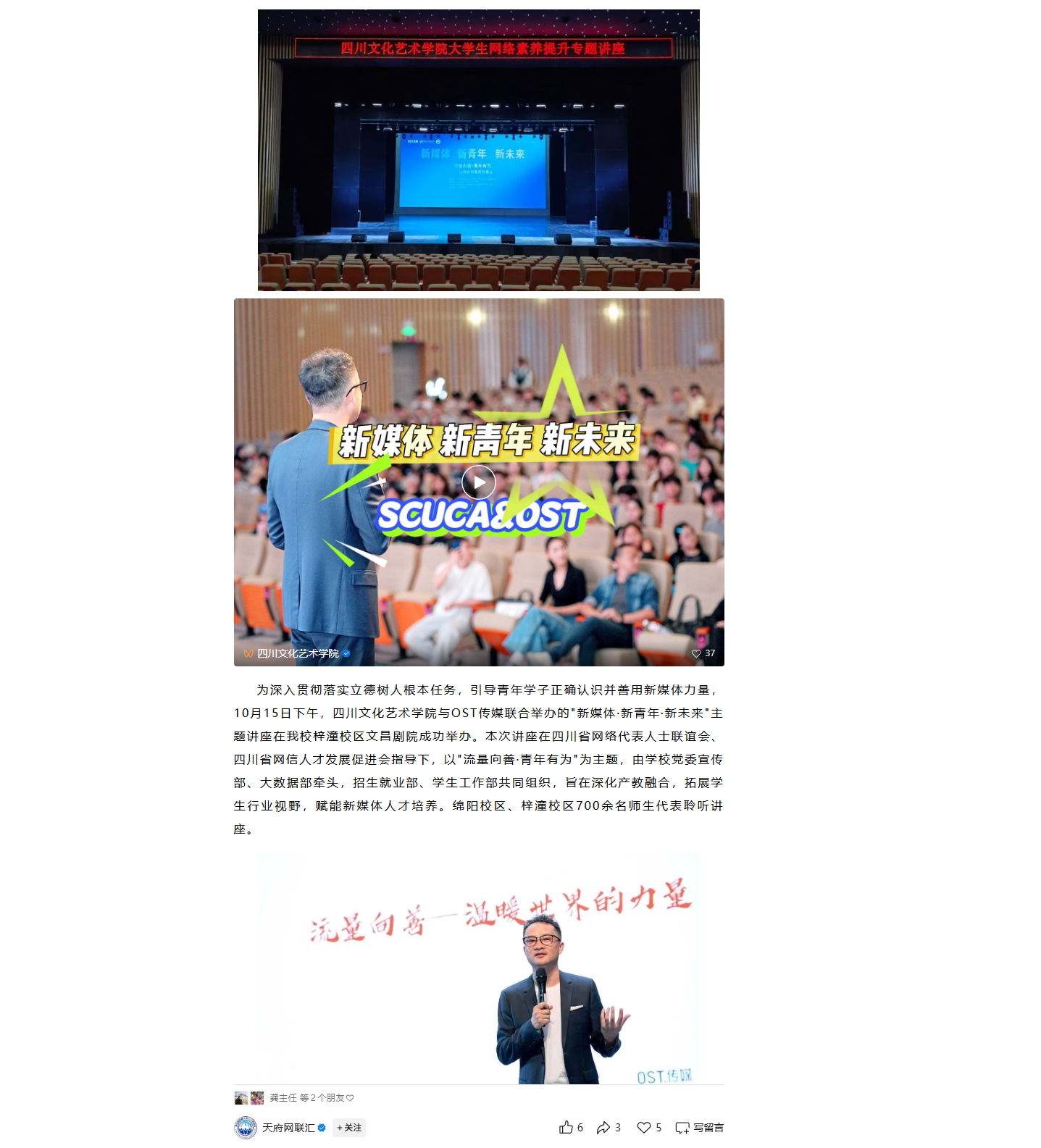 以“流量向善”引领青年担当 | 四川文化艺术学院携手OST传媒成功举办“新媒体·新青年·新未来”主题讲座