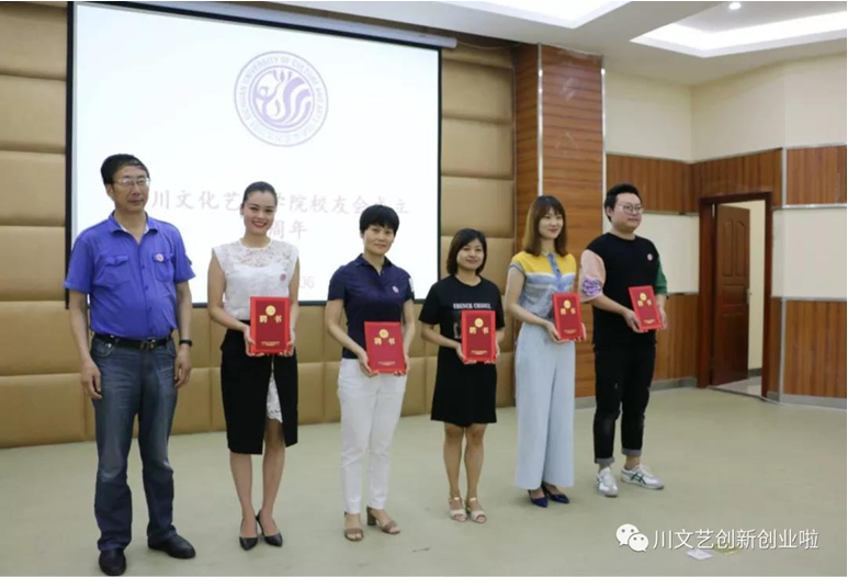 活动中,主持人宣读了四川文化艺术学院新一届校友会工作人员名单。参加活动的领导分别为他们颁发了聘书。