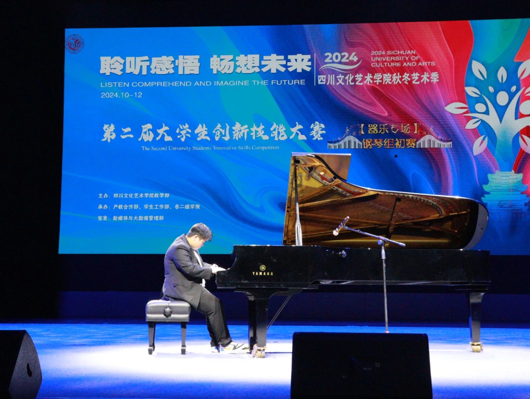10月31日,四川文化艺术学院“聆听感悟·畅享未来——青春因我而精彩”2024秋冬艺术季暨第二届创新技能大赛钢琴专场与流行演唱专场同时在文昌剧院和音乐广场举行。