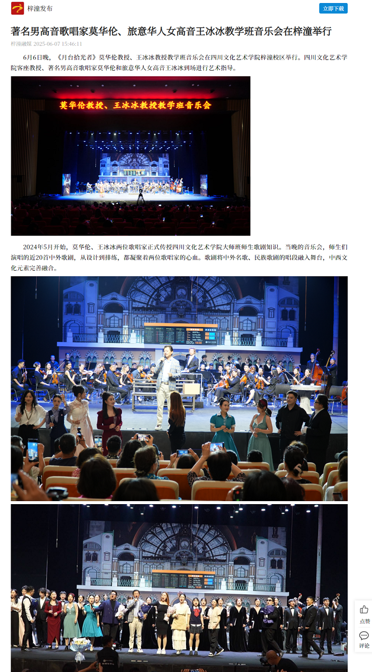 《月台拾光者》——莫华伦、王冰冰教学班音乐会在四川文化艺术学院梓潼校区成功举办 (people.cn)