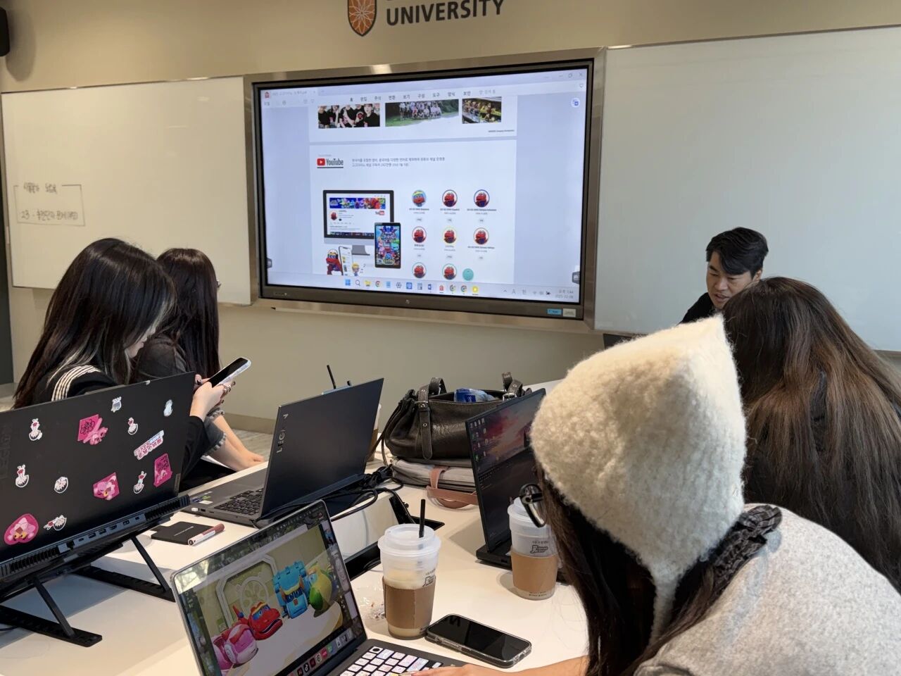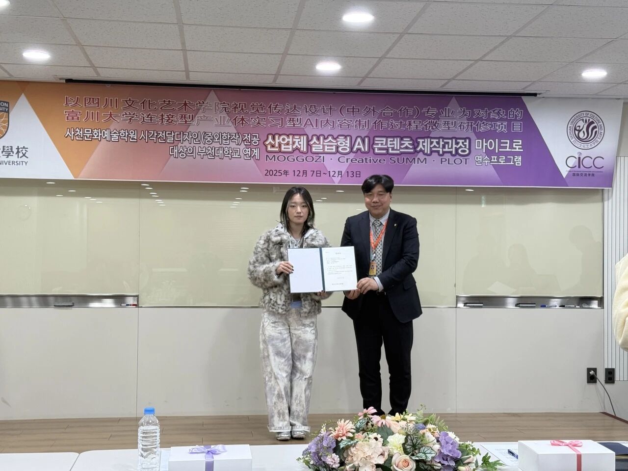 与此同时,赴韩国的7名师生则以“数字艺术创新”为主线,开展了一场融技术探索与文化感知于一体的研学之旅。学员们参与了AI图像与视频生成实践课程,并与韩国富川大学及相关文创企业进行了深入交流,系统学习了韩国动画IP的创作逻辑与AI工具在艺术创作中的实际应用。通过韩语课堂、传统服饰体验等文化活动,同学们进一步理解了文化根脉对艺术创作与传播的重要意义,树立了“创意主导、技术赋能”的创作理念,认识到人工智能不仅是前沿技术,更是可落地、可协作的艺术创作工具。