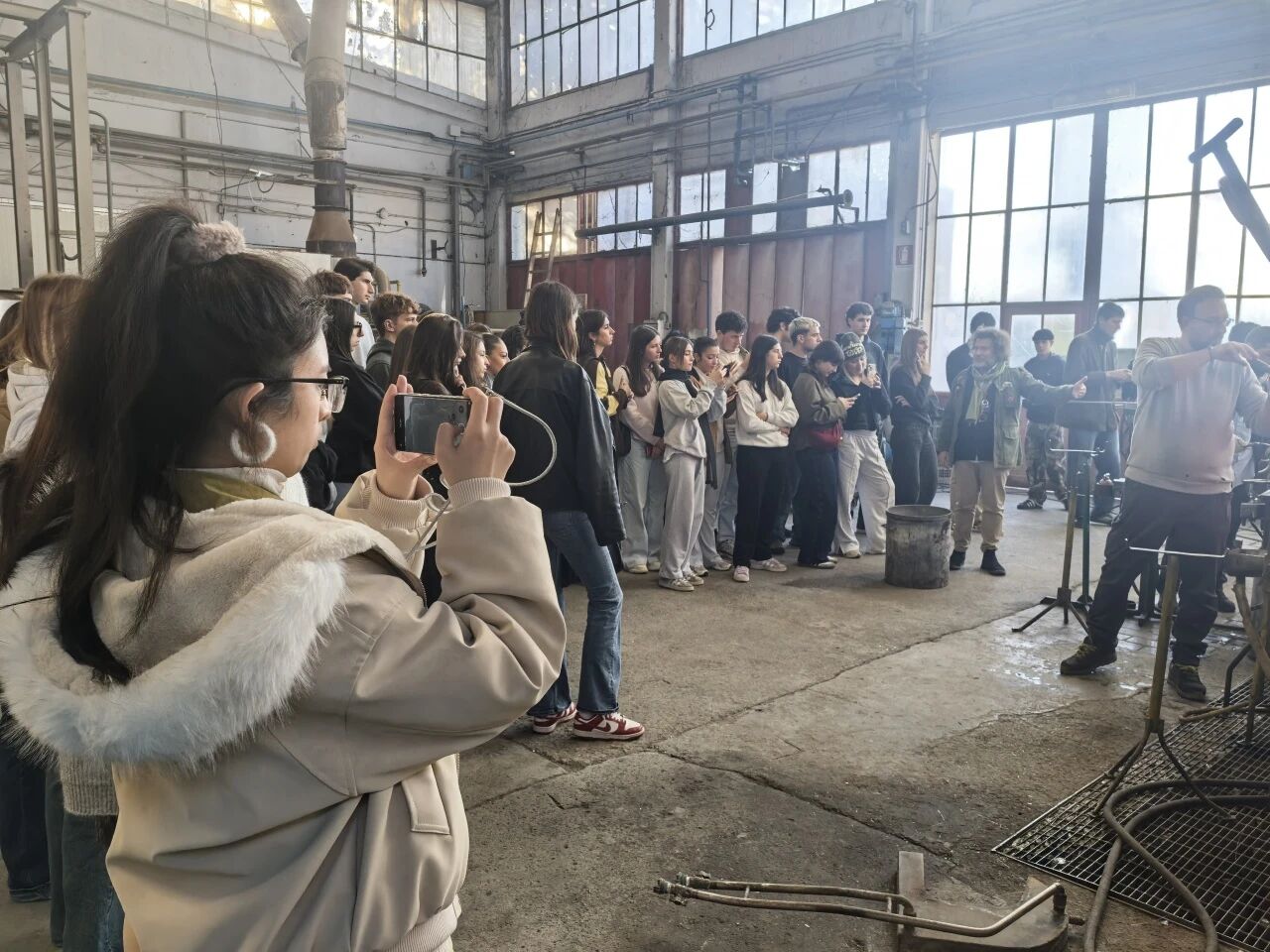 在意大利,师生一行6人围绕“时尚设计与传统工艺创新”主题展开深度研学。学员们不仅系统学习了艺术史与设计语言转化理论,更走进威尼斯百年玻璃工坊,亲手体验吹制、镶嵌等传承千年的手工技艺,感悟匠心精神与工艺温度。在“叙事性陶瓷创作”实践课程中,大家以素坯陶瓷为载体,将个人情感与记忆转化为独特的视觉语言,完成了一系列极具个性的艺术创作,展现了设计作为自我表达的无限可能。此外,研学团还走访了多所博物馆与锡耶纳古城,在中世纪建筑与文艺复兴艺术的真实场域中,深切感受历史与当代的对话,实现了从书本认知到文化体认的跨越。