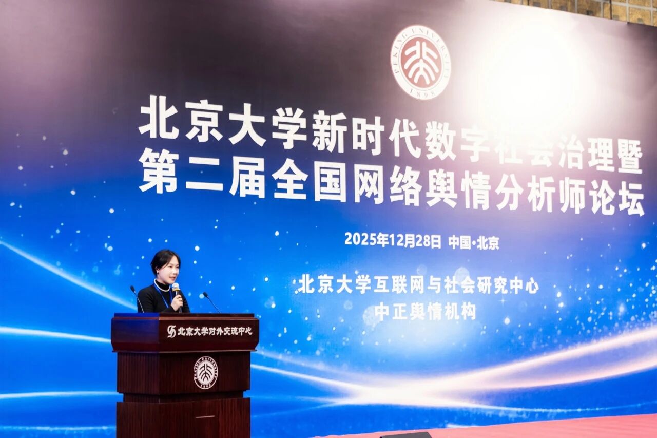 12月28日,由北京大学互联网与社会研究中心、中正舆情机构联合主办的“北京大学新时代数字社会治理暨第二届全国网络舆情分析师论坛”在北京大学隆重举行。来自全国舆情研究领域的权威专家以及党政机关、高校、企事业单位的近200名代表齐聚一堂,共同探讨AI时代背景下的舆情治理新趋势。我校大数据部部长兼党委宣传部副部长龚静受邀参加本次高端论坛,并在议题研讨环节作为代表进行了分享。