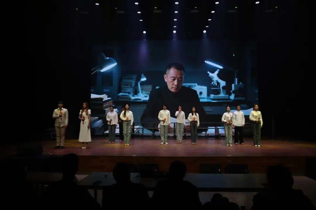 现场氛围庄重而热烈,科学家们攻坚克难的身影、毅然归国的抉择、以身许国的瞬间,深深打动了每一位观众。演出在“以先辈为炬,燃己之微光,便是薪火相传”的集体朗诵中达到高潮,掌声经久不息,既是对英雄先辈的崇高致敬,也是对新时代青年使命担当的深情呼唤。