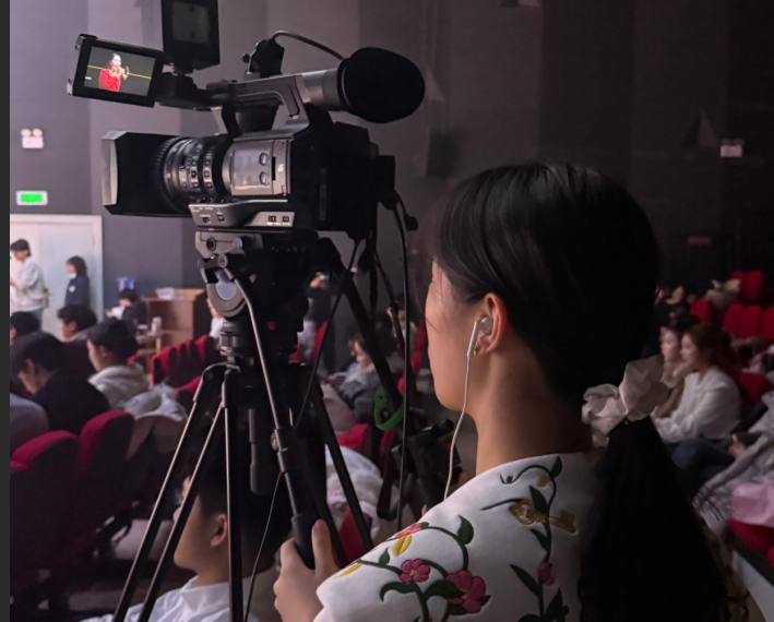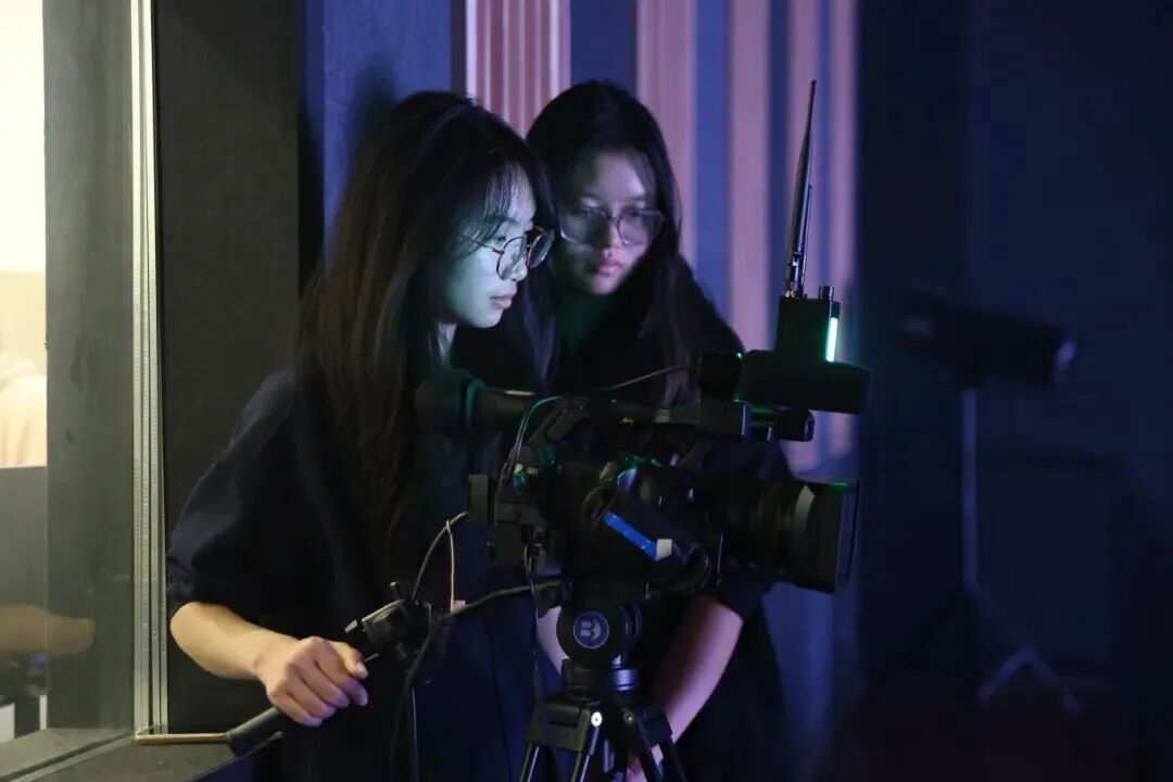 本次创作展演充分体现了我校“思想政治引领与专业教育深度融合”的育人理念。从剧本创编、舞台表演到灯光音响、视频制作与导播转播,全过程均由学生在专业教师指导下完成,有效贯通了《播音创作基础》《大型节目创作》《电视转播与导播》等多门核心课程,实现了“作业、作品、产品”的实践教学转化。演出巧妙运用AI生成影像、动态光影设计与数字舞美技术,打造出跨越时空的沉浸式视听体验,展现了数字传媒技术在赋能红色文化传播、创新思政教育形式上的巨大潜力。