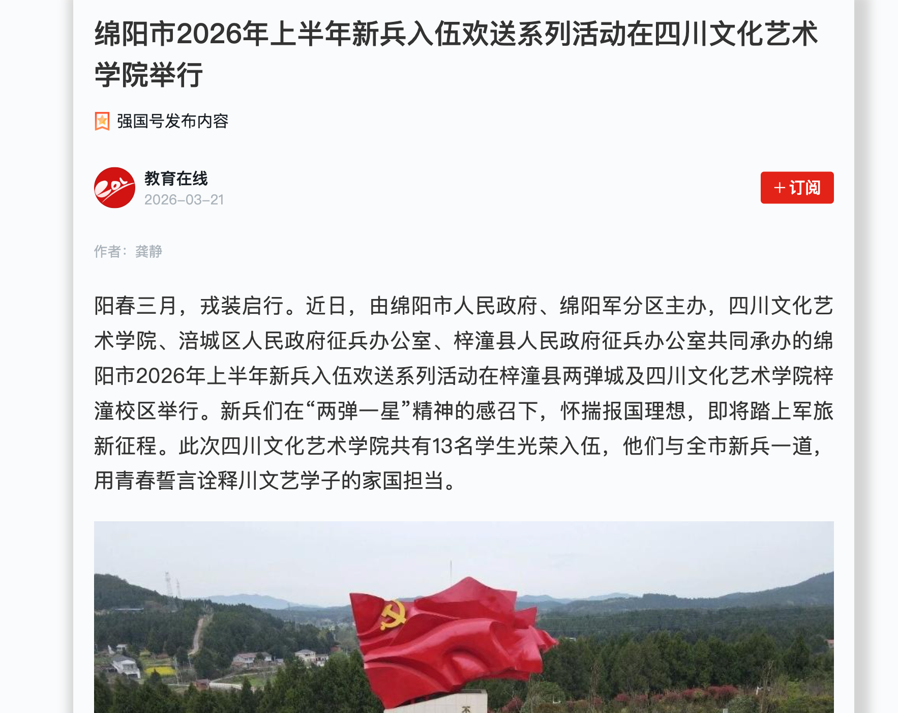 绵阳市2026年上半年新兵入伍欢送系列活动在四川文化艺术学院举行