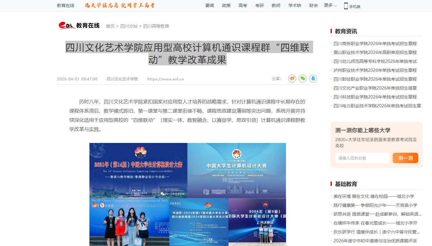 四川文化艺术学院应用型高校计算机通识课程群“四维联动”教学改革成果 —四川站—教育在线