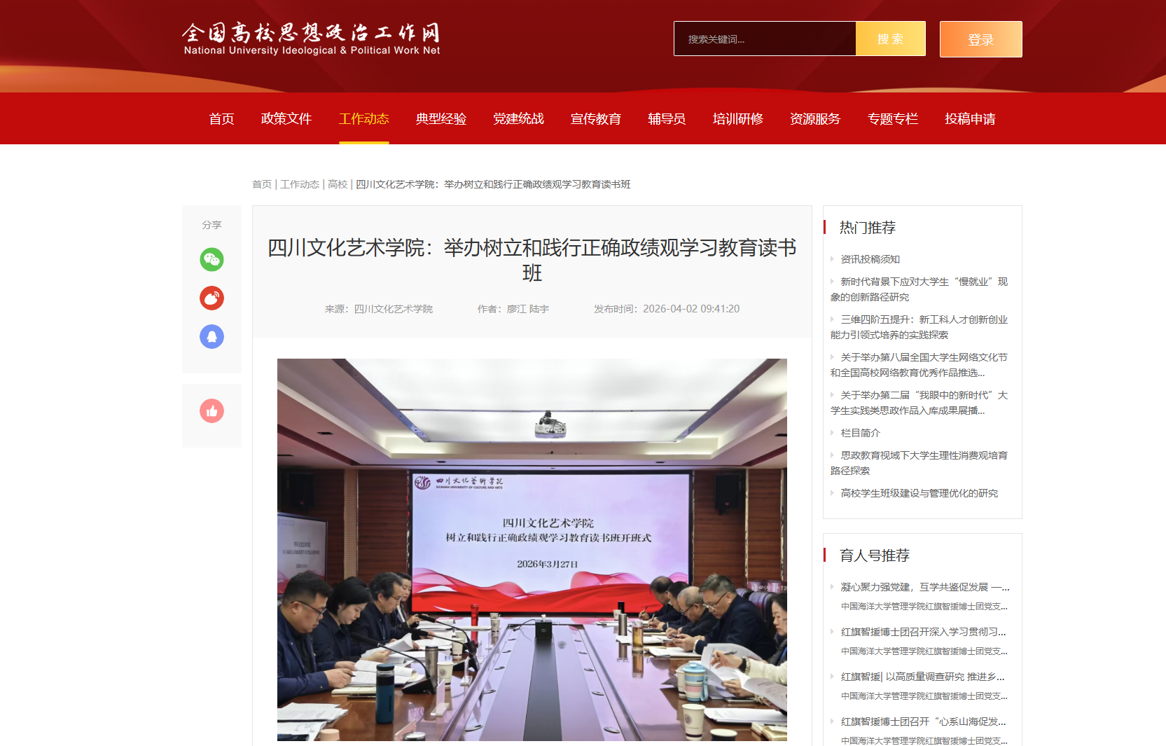 四川文化艺术学院:举办树立和践行正确政绩观学习教育读书班 - 高校 - 全国高校思想政治工作网