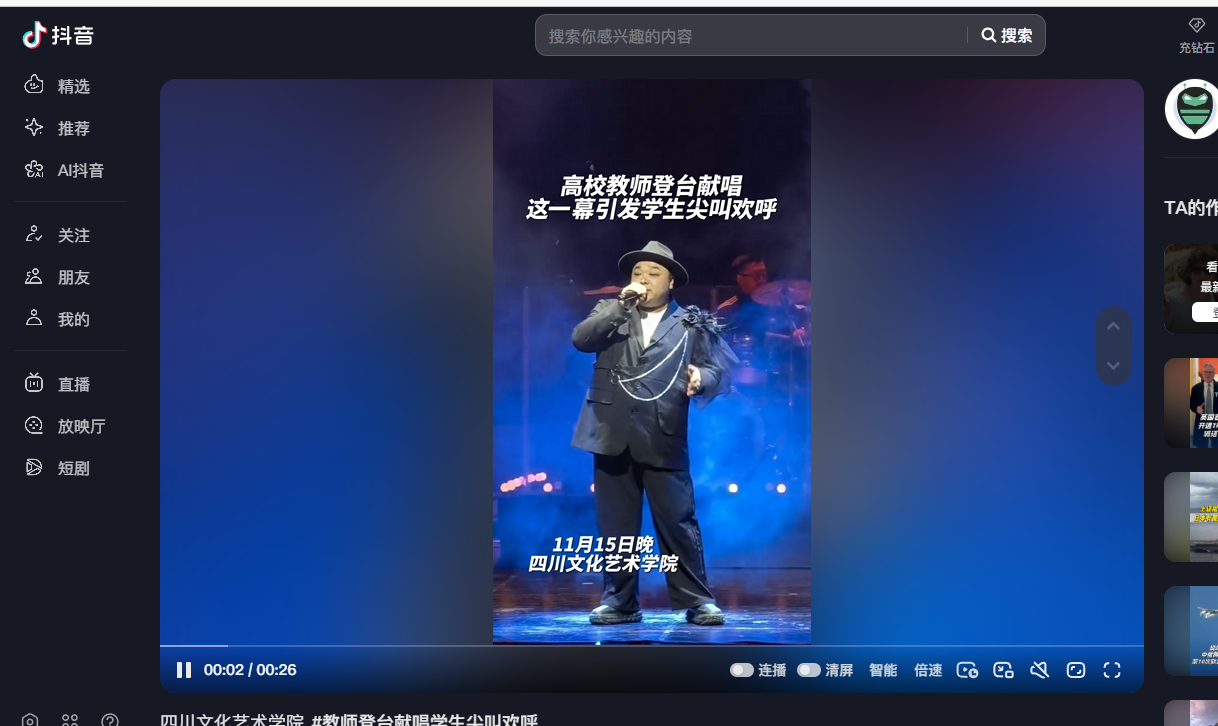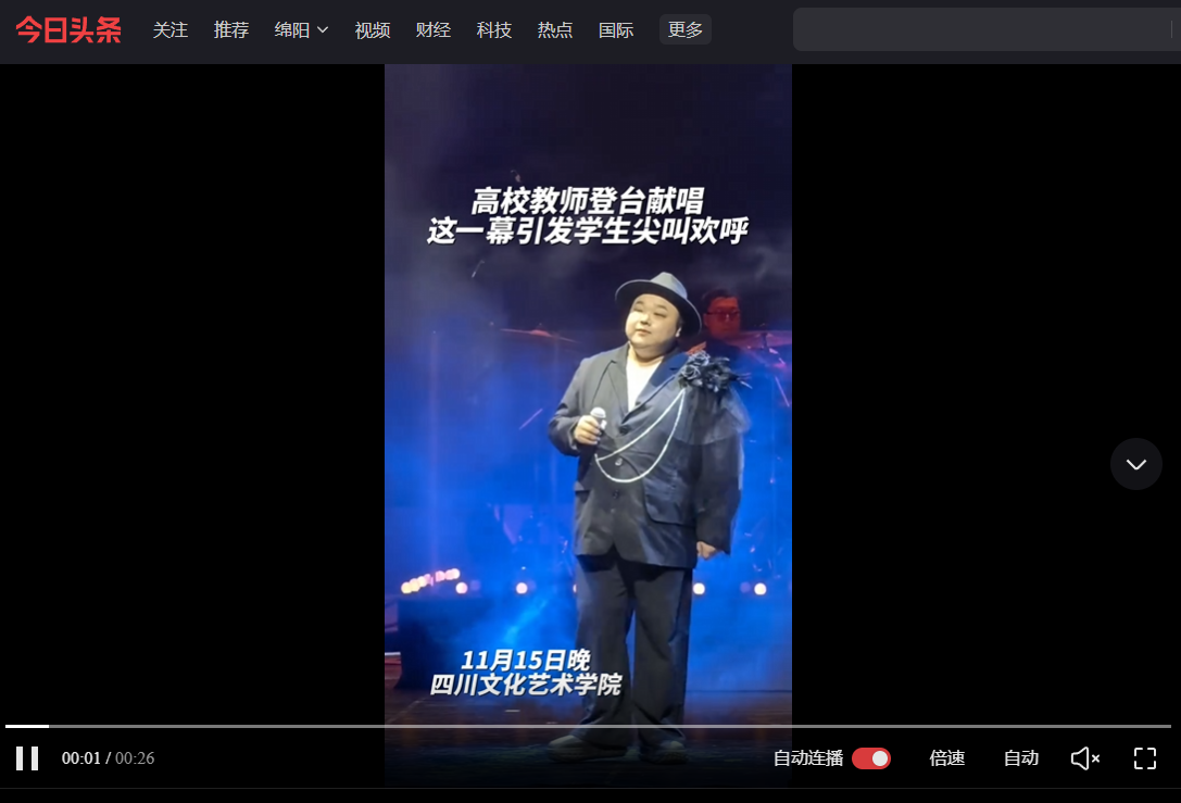 青蜂侠: 四川文化艺术学院 #教师登台献唱学生尖叫欢呼 (toutiao.com)