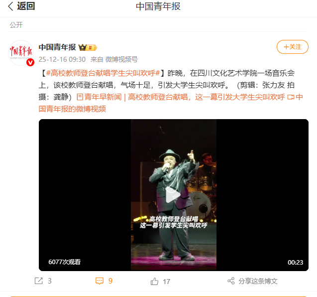 【#高校教师登台献唱... - @中国青年报的微博 - 微博 (weibo.com)
