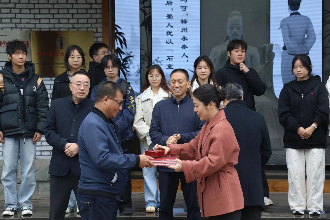 任文韬副局长致辞表示,四川文化艺术学院在文同清风馆设立廉洁文化基地,是对千年清廉文脉的赓续与弘扬;站在历史与现实的交汇点,双方将共同感悟文同遗风,接受精神洗礼。杨桂伟经理强调,清风馆是以文同史实为根基打造的廉洁文化地标,此次活动将有效发挥新时代廉洁文化启智润心的教育功能。刘立新书记指出,学校依托文同清风馆开展廉洁文化建设,聚焦文同清正廉明的精神品格,是彰显千年文化自信的生动实践,也是四川文化艺术学院深化廉政建设的重要举措,更是向“胸有成竹、清正自守”的文同先贤致敬的具体行动。此次挂牌后,这里将成为我们开展廉政教育的实践课堂和文创基地。随后,刘立新与杨桂伟共同为基地揭牌,"四川文化艺术学院廉洁文化建设基地"在文同清风馆正式落成,由纪委委员张璇代表四川文化艺术学院纪委向基地赠送纪念册和《清流》《让党旗高高飘扬》两首歌曲。
