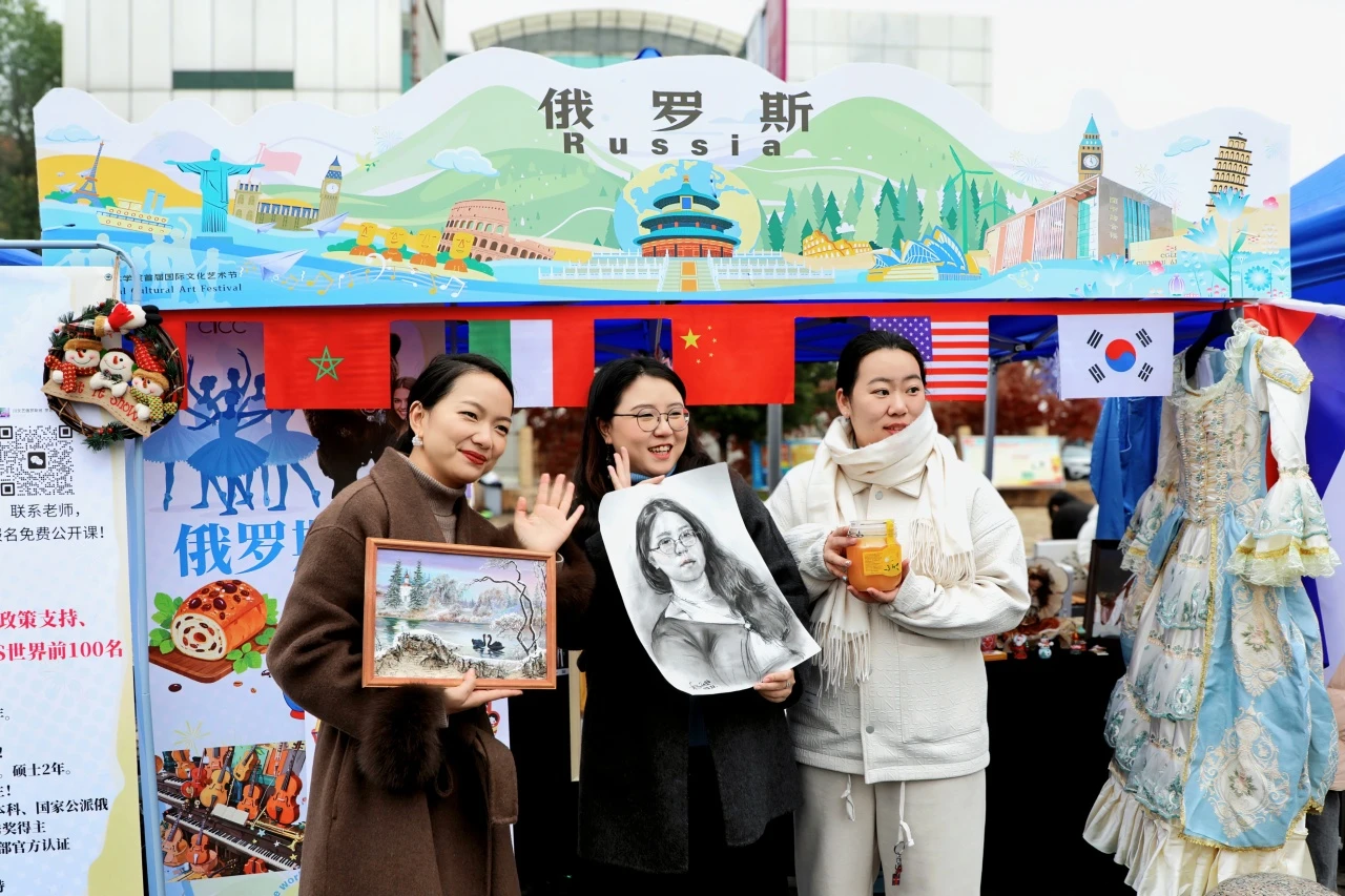 推动中外师生跨学科、跨专业交流,构建具有世界多元文化特色的校园文化体系,是举办国际文化艺术节的主要意义。游园会中,丰富的展品全方位展示了各国的历史、艺术、民俗、传统服饰等文化元素,让师生们仿佛穿梭于世界文化长廊。中华文化展区展示汉服、茶艺、围棋等中华优秀传统文化,多元的魅力尽情碰撞出四射的火花,绘制出一幅美美与共的美好画卷。