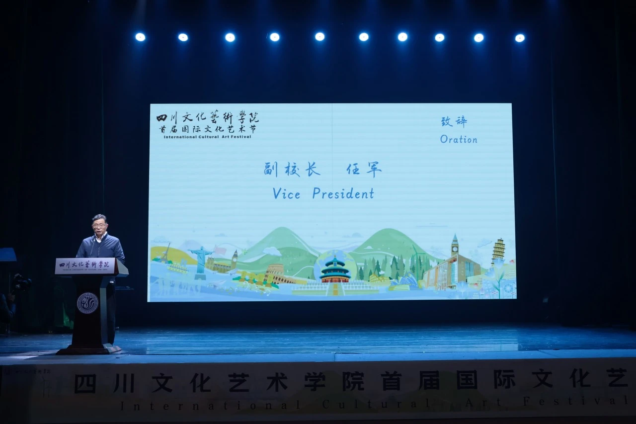 晚会正式开始前,学校副校长任军致辞。他首先对出席的嘉宾表示热烈欢迎;他讲到,我校一直致力于培育具有国际视野和深厚文化底蕴的艺术人才,本届国际文化艺术节不仅展示了学校的教育成就,更为师生提供了一个学习和交流的平台,促进了知识的互鉴与能力的提升;他强调,此次活动也是我校积极参与国际教育交流、不断拓展国际朋友圈的重要举措。未来,我校将在文明互鉴的伟大征程中砥砺奋进、不懈努力,为绵阳市实现高水平对外开放提供支持,贡献川文艺力量。
