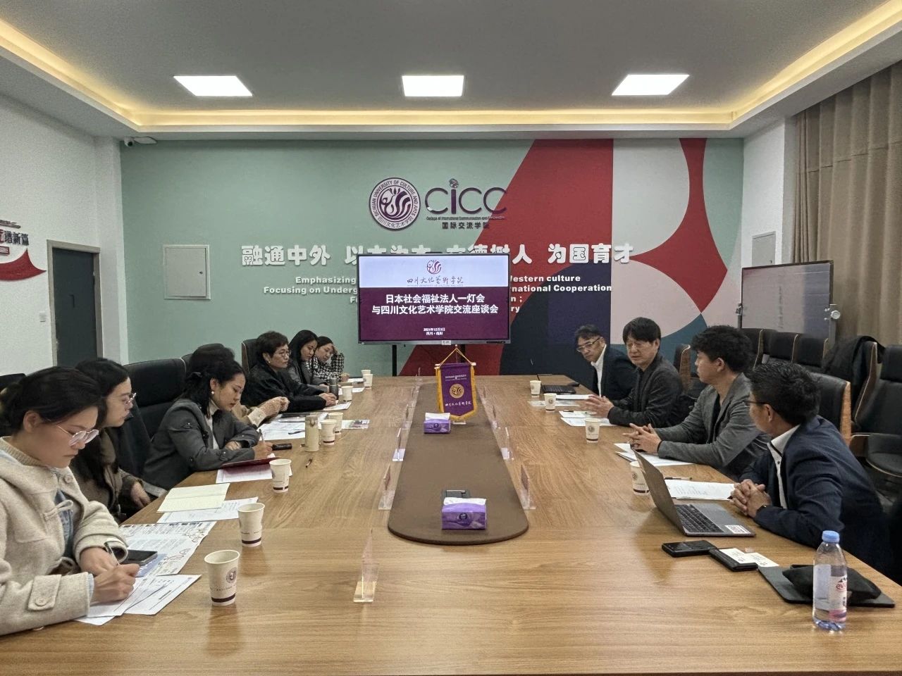 2024年12月3日,日本一灯会福祉企业代表团莅临我校进行考察访问,双方就联合培养人才、学生实习就业以及国际产业研合作等多个领域进行了深入的探讨与交流。此次交流会议由四川文化艺术学院国际交流学院名誉院长于乃明主持,出席会议的领导包括日本一灯会福祉企业理事长山室淳、常务理事柴谷宽人、理事小林畅仁、株式WeTec董事长周春燕;四川文化艺术学院执行校长梁秀梅、国际交流学院院长钟欣纯、副书记敬娟等相关负责人。
