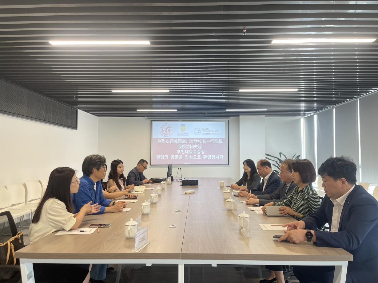 5月13日,韩国富川大学校长韩政锡率代表团一行六人访问四川文化艺术学院,双方围绕人工智能与艺术融合、国际化人才培养等方向展开深度交流,共同开启两校跨国合作新篇章。