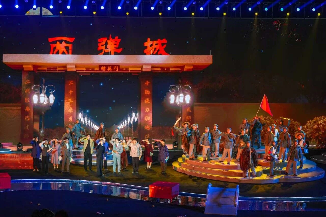 当晚的演出中,川文艺学子们无疑是聚光灯下最耀眼的明星。他们凭借扎实的专业功底、饱满的艺术激情和富有创造力的表现,在科技打造的梦幻场景中,为观众奉献了《天府十二时辰》等歌舞、戏剧表演等一系列精彩节目。在《遇见蜀道》中,他们化身"五丁力士",刚劲有力的舞姿配合震撼音效,再现了先民开拓蜀道的壮阔场景,与无人机光影、激光特效交织成穿越时空的视觉盛宴;《人民江山》里,他们以舒展灵动的舞步,配合沉浸式情景叙事,将"两弹一星"精神的薪火相传演绎得淋漓尽致,让现场观众深切感受红色文化的强大感染力。他们的身影与水光潋滟的凤凰湖、璀璨夺目的状元第街景致交相辉映,完美诠释了传统与现代、自然与人文的和谐共生。他们用青春律动点燃了现场,向全国乃至世界展示了四川青年师生昂扬向上、多才多艺、敢于担当的时代风貌。