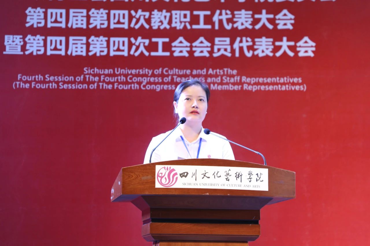 随后,大会主席团召开第二次会议,各代表团团长分别就代表们的讨论情况进行了发言,对提交大会审议的相关报告和文件进行了举手表决。与会代表一致通过了《学校年度工作报告》《学校年度财务工作报告》,形成了《四川文化艺术学院第四届第四次教职工代表大会暨第四届第四次工会会员代表大会的相关决议》。