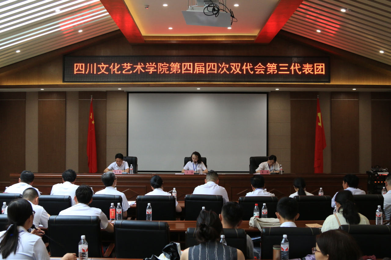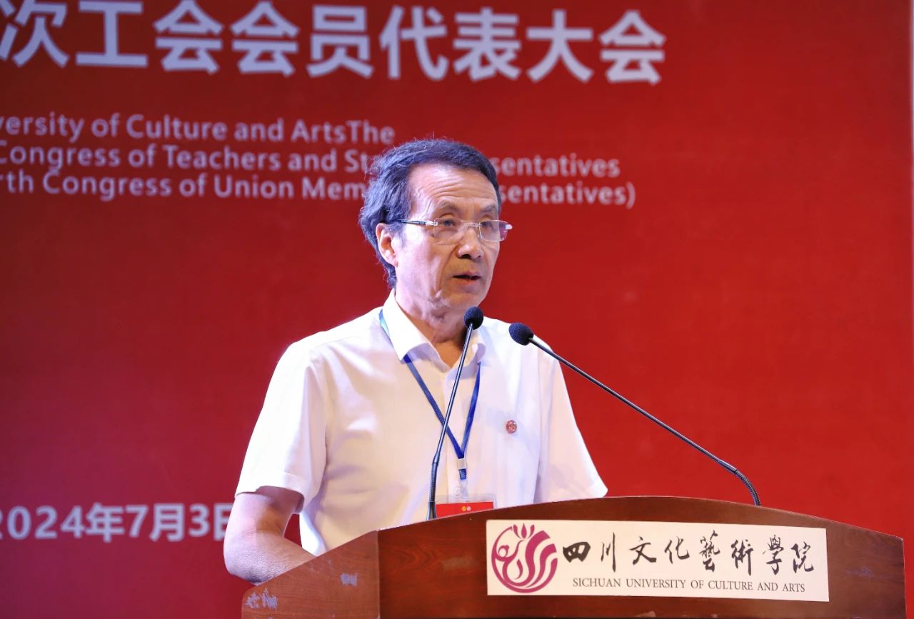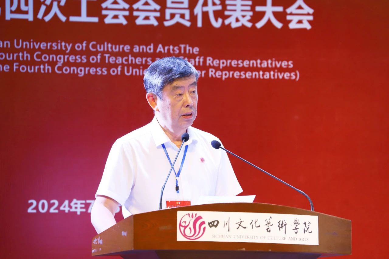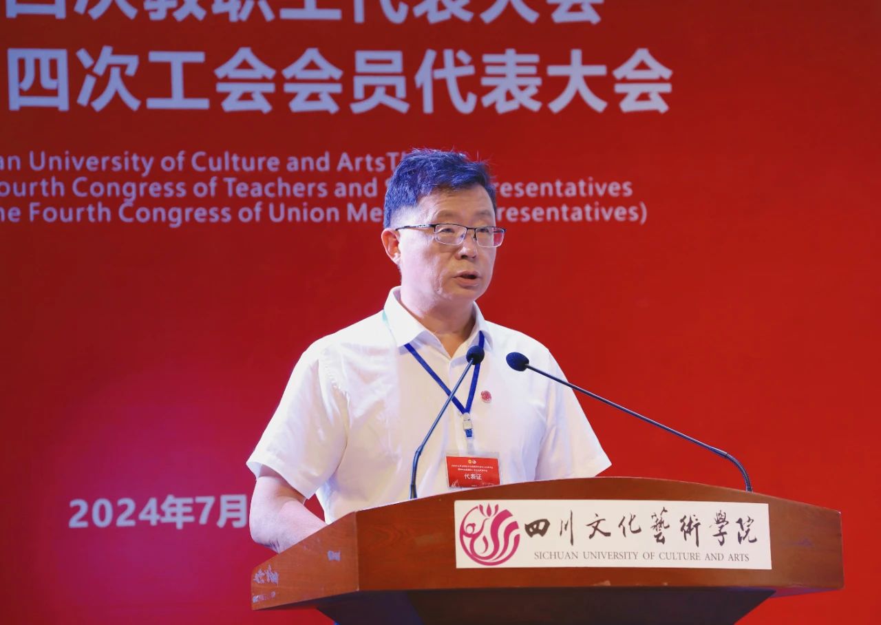 7月3日,四川文化艺术学院第四届第四次教职工代表大会暨第四届第三次工会会员代表大会在梓潼校区文昌剧院召开。学校党委书记、省政府督导专员左冬梅,党委副书记、纪委书记、工会主席刘立新,党委委员、副校长杨文勇、罗建光,副校长任军、陈志、王少刚,学术委员会主任黄金中,校工会各委员以及全体代表和嘉宾共计300余人参加大会。华怿集团公司党委书记、副总经理龚元乔应邀出席大会。会议由杨文勇主持。