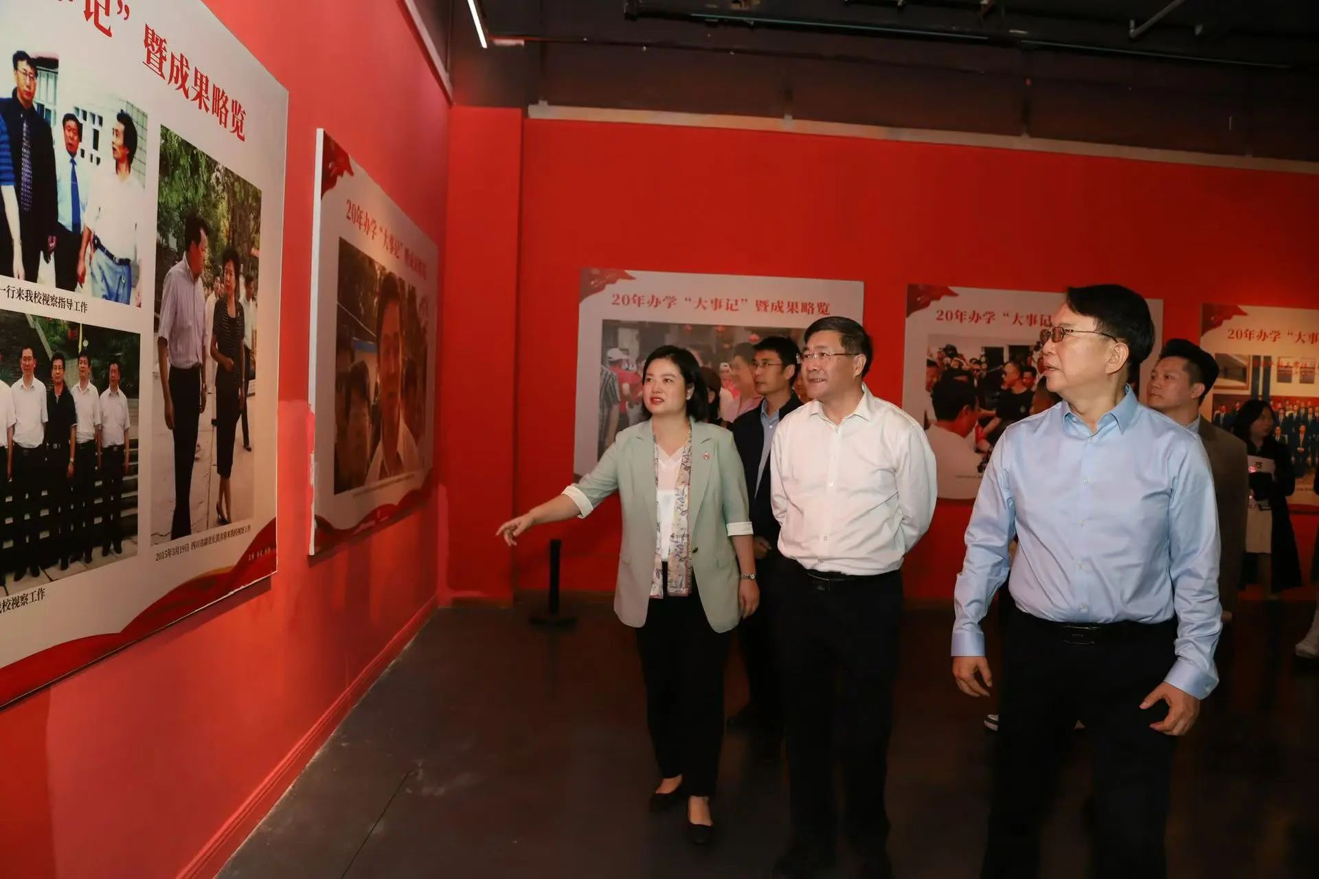 开幕式结束后,我校党委书记、省政府督导专员左冬梅一行陪同参加开幕式的领导和来宾一同参观了书画展。参观过程中,民进四川省委会专职副主委张宏与现场的文艺工作者和师生亲切交谈。他强调,在文化强国的征程中,书画艺术作为传统文化的瑰宝,承载着传承历史、弘扬民族精神的重要使命。他鼓励大家,要创作出更多增强人民精神力量的优秀作品,继续为推动文化繁荣和建设文化强国不懈努力。参加活动的领导和来宾还参观了我校办学成果展。